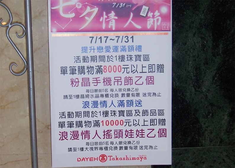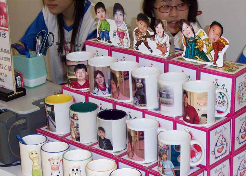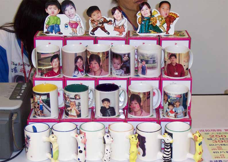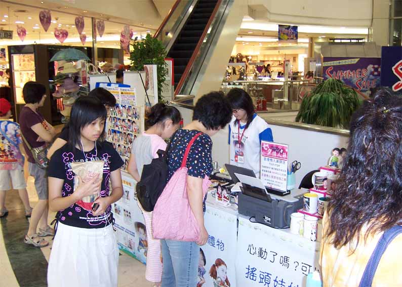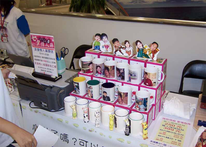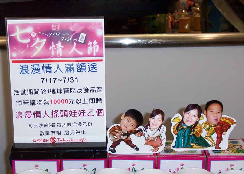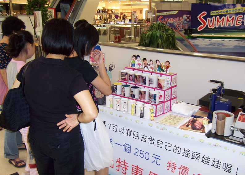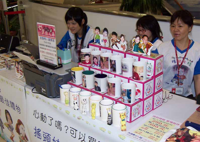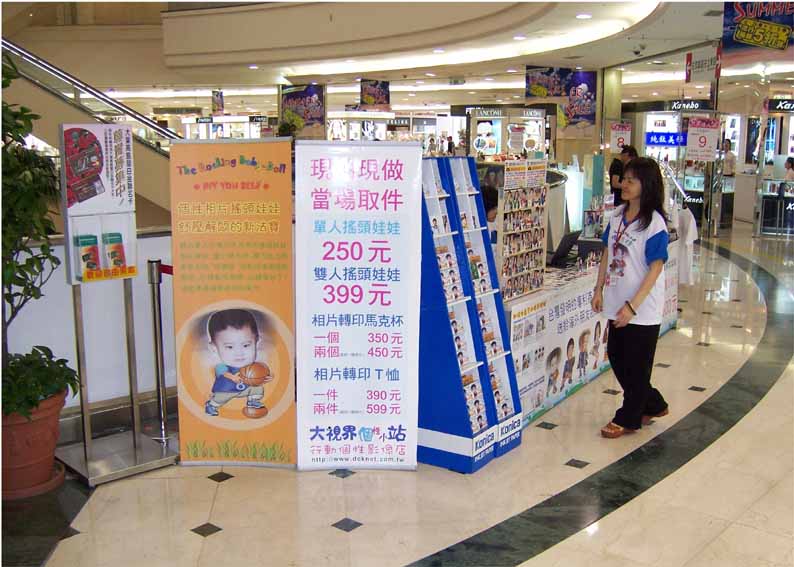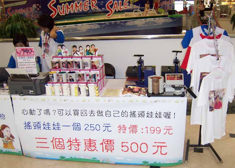 台北天母大葉高島屋百貨公司一樓珠寶專櫃配合活動.現場銷售相片搖頭娃娃.熱轉印馬克杯.熱昇華轉印T恤.等個性商品